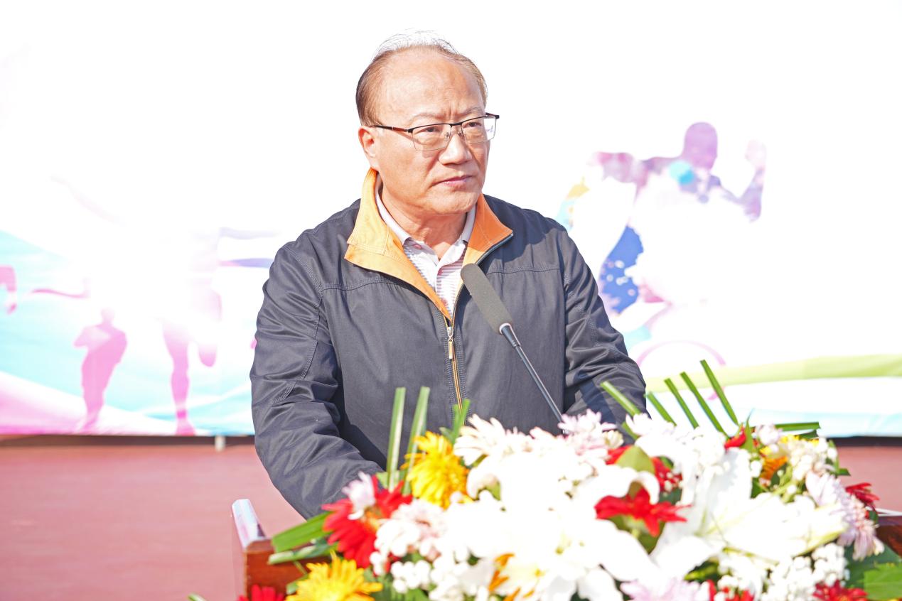 刘新跃代表学校,向本届运动会的顺利举行表示热烈祝贺;向精心筹备本届运动会的师生员工、辛勤执裁的裁判员以及积极参赛的运动员们,致以崇高敬意。他指出,在全国上下深入学习宣传贯彻党的二十届四中全会精神之际,我校迎来了第26届田径运动会。体育是力量的角逐,是智慧的较量,更是精神的彰显。作为促进人的全面发展的重要手段,体育对于健全健康人格、塑造美好心灵、涵养个人修养以及陶冶高尚情操具有不可替代的重要作用。