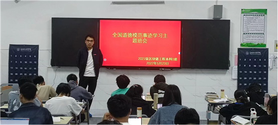 “讲道德故事,评道德事理,学道德模范,树道德新风”为深入推迸文明校园建设,进一步在全院上下营造见贤思齐的浓厚氛围,不断激励引导全院师生向先进典型学习、向道德模范致敬,提高师生们的道德修养、人文修养。2022年5月23日,区块链学院开展学习全国道德模范事迹学习主题班会,各班班会由辅导员主持。