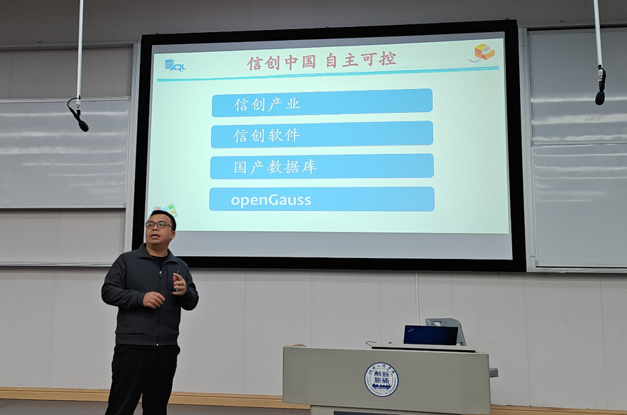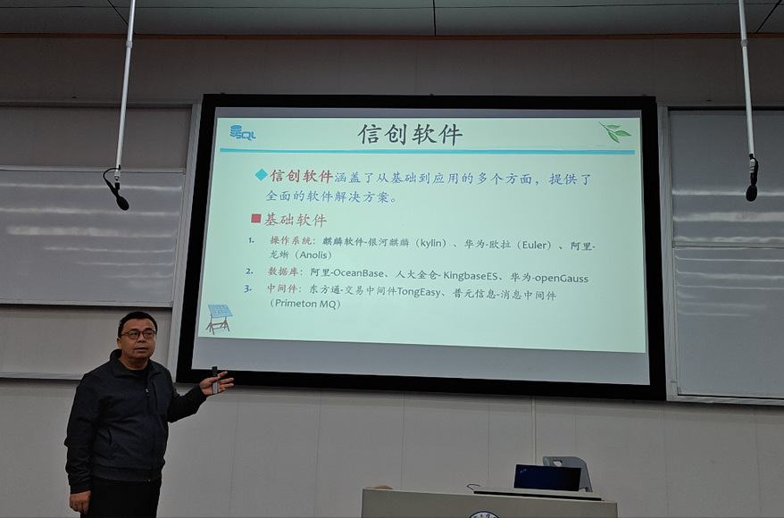 欧阳皓教授以其深厚的学术背景和丰富的实践经验,为听众们带来了一场精彩纷呈的学术盛宴。讲座围绕信创产业、信创软件、国产数据库以及OpenGauss等核心内容,层层递进,深入浅出地进行了讲解。