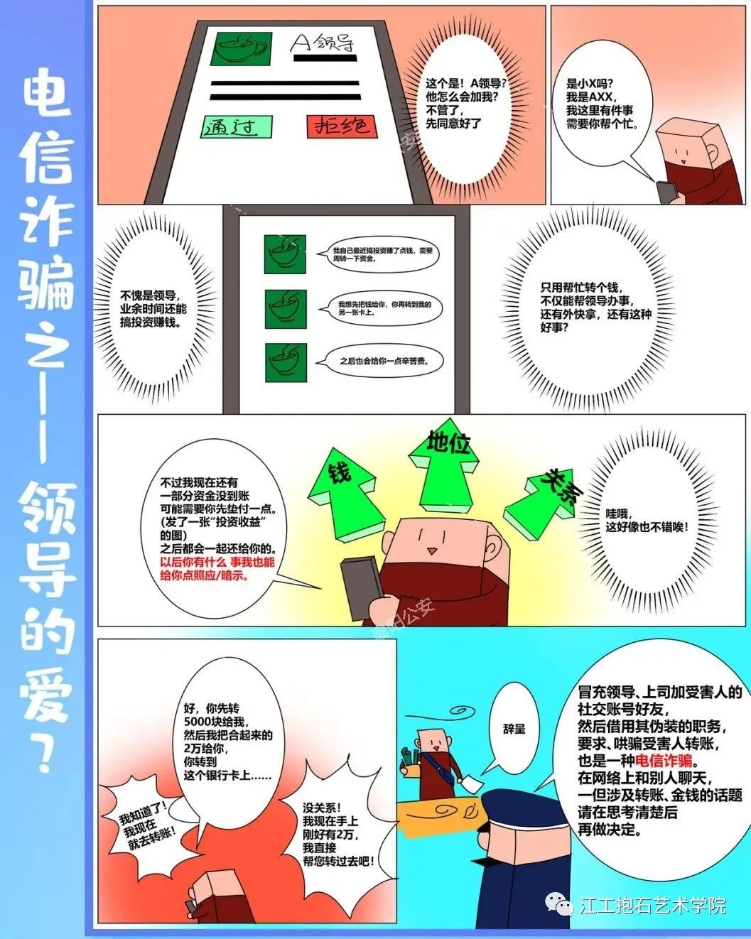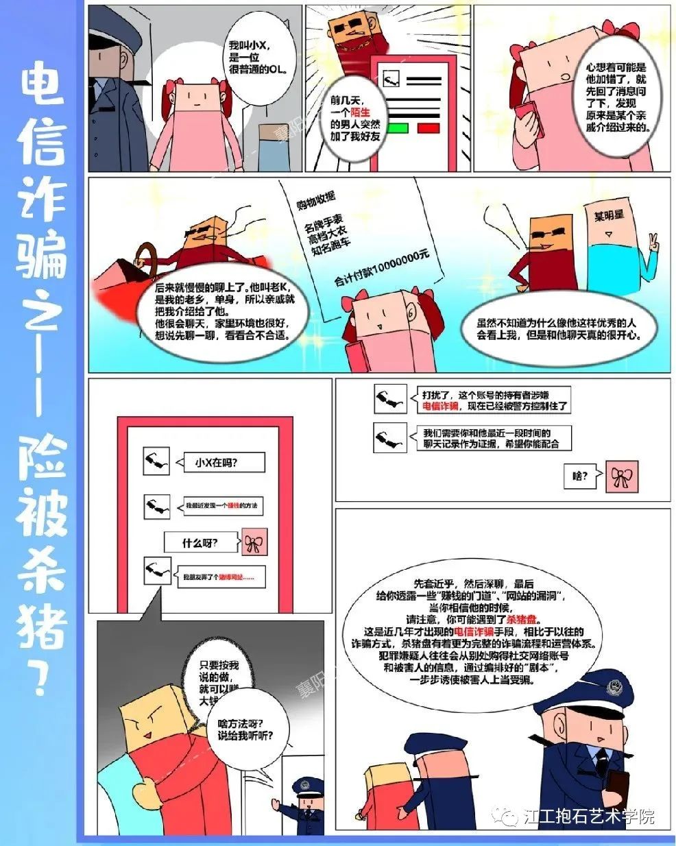 电信诈骗的受害群体广泛,因为诈骗分子采取的是漫天撒网的方式,碰着一个是一个,有很强的随机性,所以受害者包括社会各个阶层,不论是企业高管、个体工商户、公务员,还是老人、学生、高校教授,都有可能不幸中招。反诈漫画:带你了解电信网络骗子们的诈骗套路,看看他们是怎么样盯着你的钱包的!