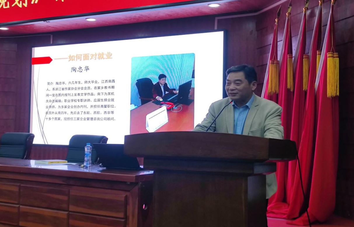 陶忠华特别强调了个人职业与定位的重要性,指导学生们如何在了解自我和社会需求的基础上进行有效的职业定位。此外,他还通过自己编写的《就业拐点》一书,为学生们揭示了职业生涯中可能遇到的转折点及其带来的机遇,激发学生们面对未来挑战的勇气和信心。