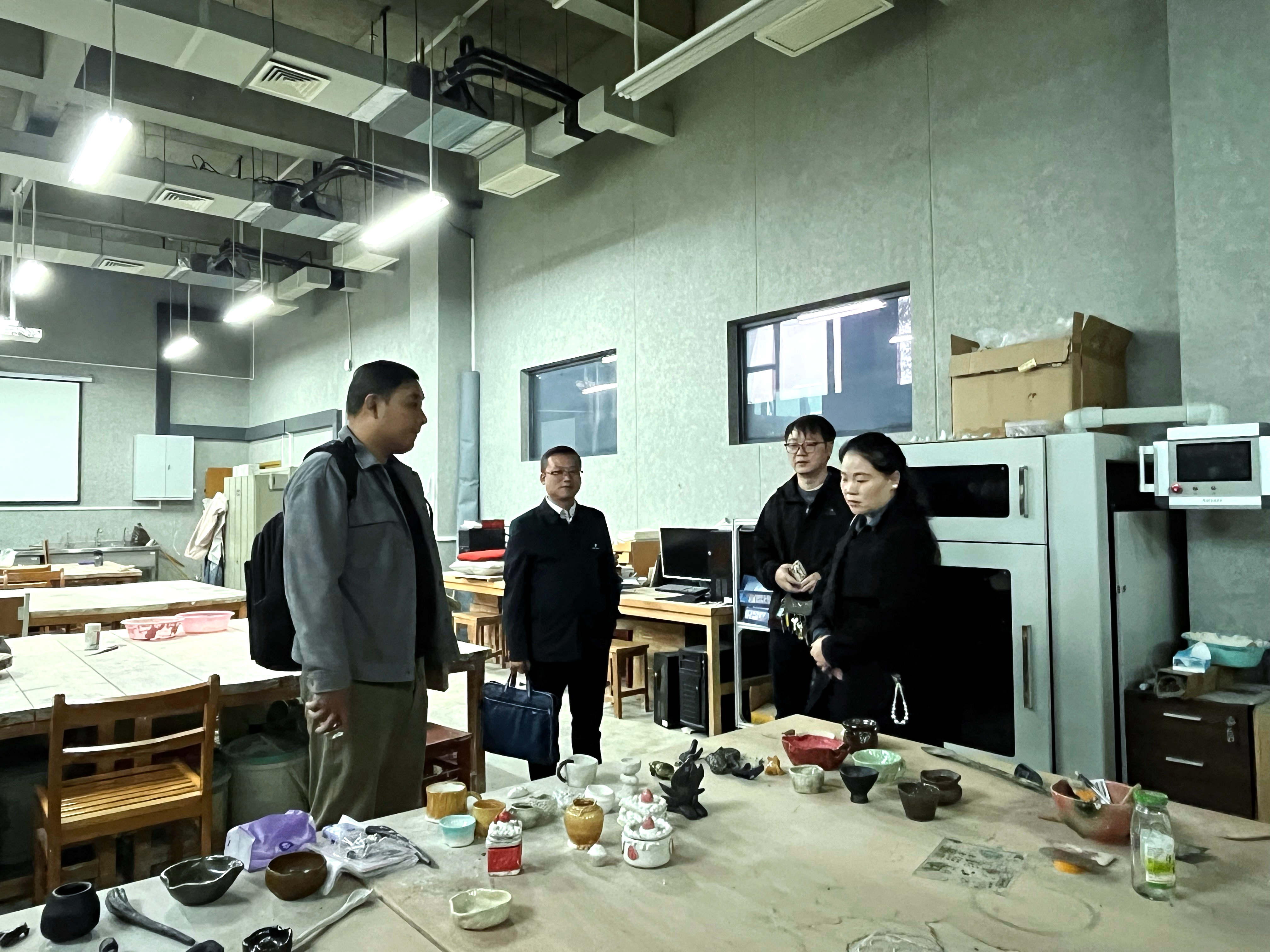 10月7日上午,考察组抵达武汉理工大学艺术与设计学院,受到该院分管本科教学的副院长郑杨硕、环境设计教研室王主任及刘教授、谢教授的热情接待。双方围绕艺术设计专业的人才培养模式、实践教学方法创新、课程优化与跨学科融合、产学研协同育人机制以及特色工作室建设与数字化转型等议题进行了深入座谈。