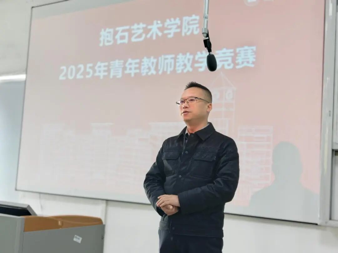 2025年11月19日,抱石艺术学院在天工校区艺术楼401教室,成功举办了青年教师教学竞赛院级选拔赛。此次比赛吸引了学院12名青年教师参与,由院长张志胜、副院长王冬冬以及教师代表王楚冰、王康、熊秀、胡艺萍组成评委组,全体教师纷纷到场观摩学习,共同交流教学经验。