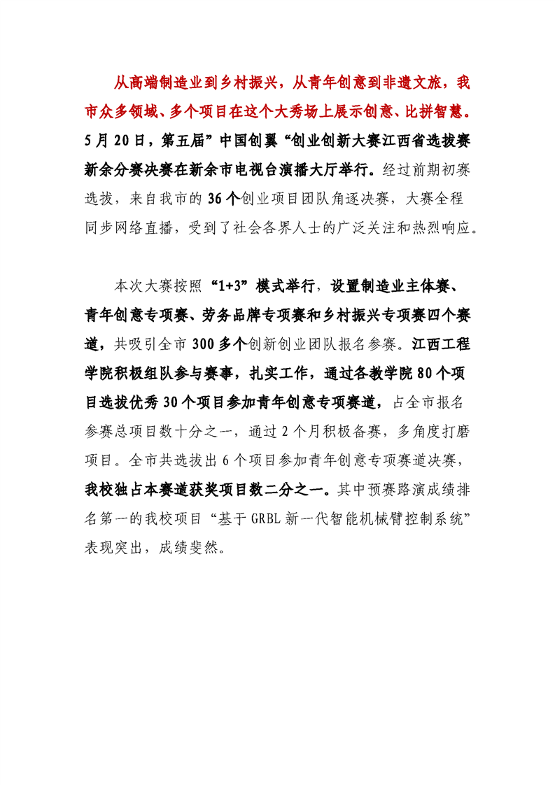 喜报!我校在第五届“中国创翼”创业创新大赛江西省 选拔赛新余分赛决赛中荣获佳绩!