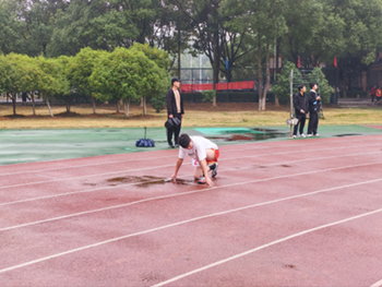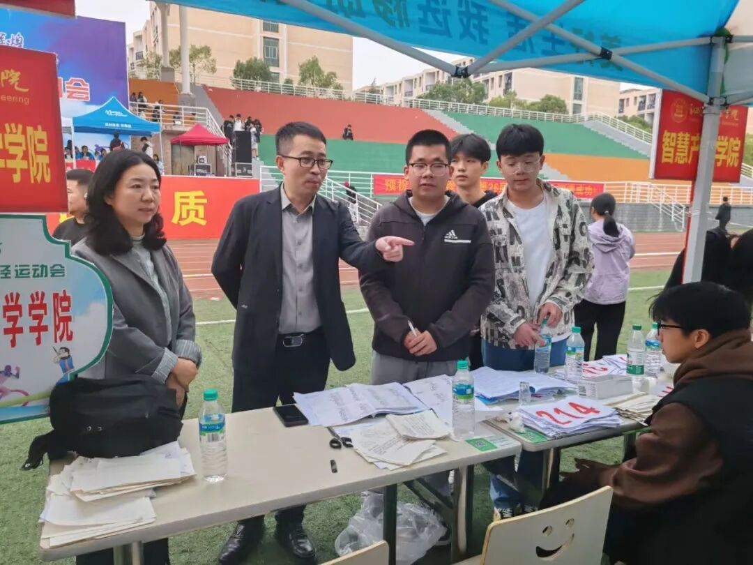 运动会上,院长巢喜剑、党总支书记王娟亲赴运动会训练现场。