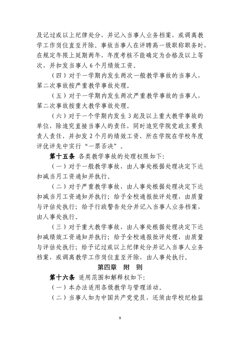 星空(xingkong)体育官方网站教学事故认定及处理办法(修订)