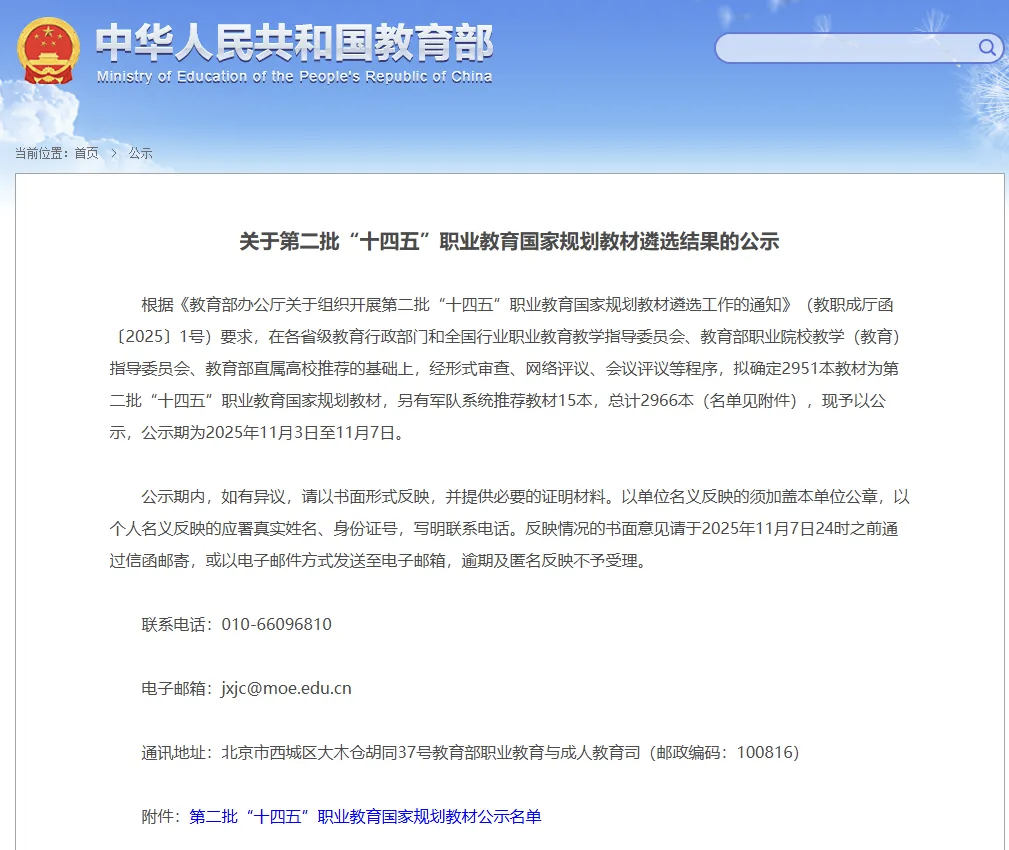 自教育部启动第二批“十四五”职业教育国家规划教材遴选工作以来,学校高度重视,由教务处统筹协调,各教学院部协同推进,为教材申报工作提供全方位保障。巢喜剑教师团队秉持精益求精的态度,反复打磨教材内容、完善编写体系,严格把控材料质量与规范要求,最终高质量完成申报工作。