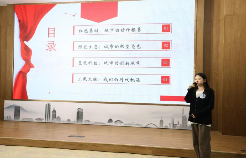 此次备赛期间,张芷晴同学始终以严谨认真的态度投入其中,精心打磨每一个细节。学院给予全力支持,专业老师全程指导,帮助她优化宣讲逻辑、提升表达感染力,为她的赛事之路保驾护航。站上赛场,张芷晴同学从容自信、娓娓道来,用鲜活的案例、真挚的情感,将新余的历史底蕴与时代风貌生动呈现,既展现了对家乡的深厚热爱,也彰显了经管学子关注社会、勇于表达的青春风采,赢得了评委与现场观众的一致认可。