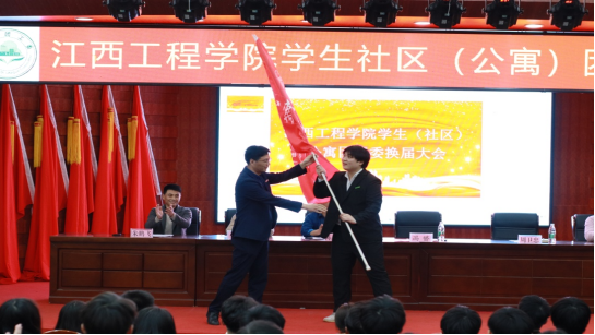 会议最后,校党委副书记、副校长冯赟向新一届团学干部授旗并总结讲话,冯副校长表示:“近年来学生公寓深入开展的党团建设+“一站式”社区综合管理模式工作十分出色、出彩,取得了良好的效果和成果,学生干部们功不可没”,并对过去一年中辛勤工作、无私奉献的全体团学干部们表示衷心的感谢,也向受到表彰的集体和个人表示祝贺。