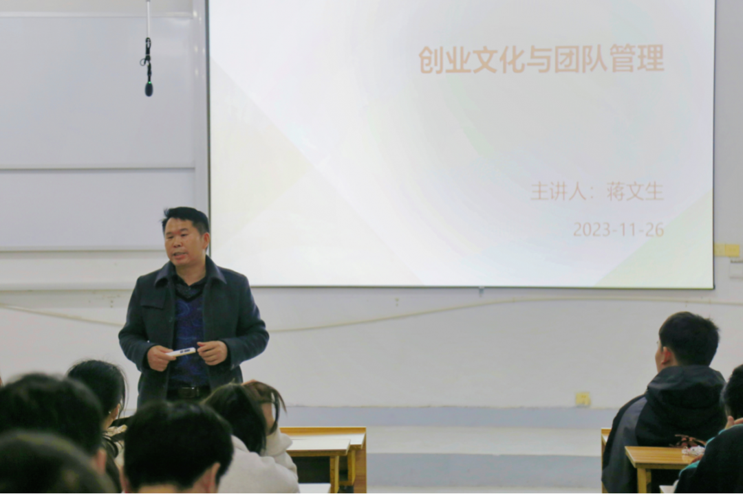 在第26期大学生创新创业讲座中,高级经济师蒋文生以“创业文化与团队管理”为主题,用两部中国经典名著故事区分“团伙”与“团队”两个概念,并由此引出创业文化的定义。在讲座中,蒋老师结合国际国内时政和案例,引经据典、深入浅出地阐明创业文化的价值和构建。蒋老师认为,创业文化对团队管理有着深远影响,团队管理对创业文化具有推动作用;要做好团队管理,一要建立共同愿景和目标,二要强化沟通和信任,三要激发团队成员的积极性和创造力,四要培养团队成员的领导力和协作能力。活动还与同学们分享了阿里巴巴、华为、特斯拉等五个创业文化与团队管理的实践案例。同学们受益良多,大家能够充分认识并正确分析创业团队的优劣势,掌握如何打造创业文化以及创业团队组建运作的策略和方法。同时纷纷表示在今后的学习和生活中将会更加积极地投入到创新创业中。