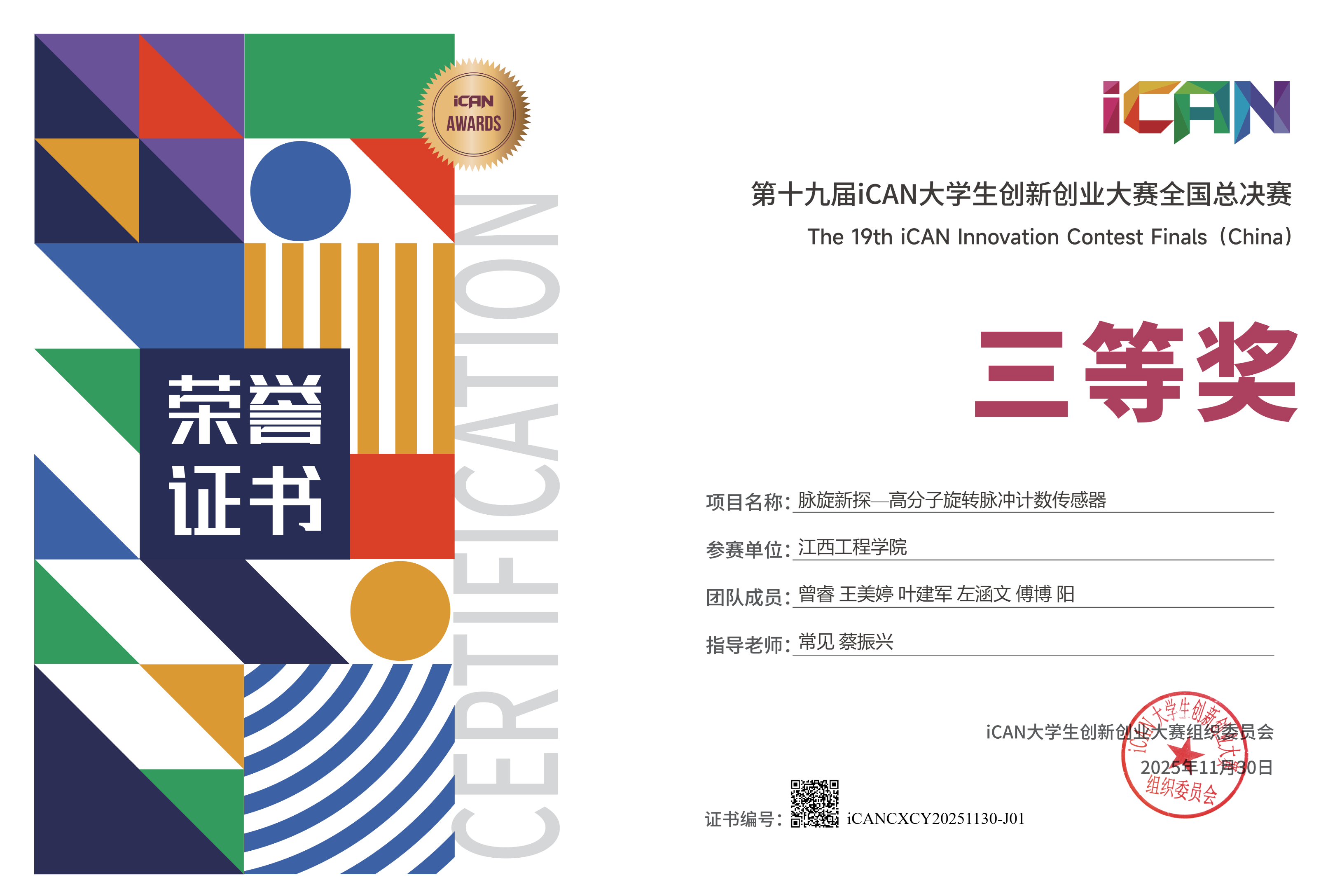 近日,2025年第十九届iCAN大学生创新创业大赛全国总决赛在杭州市萧山区钱江世纪城杭州国际博览中心圆满落下帷幕。经过激烈角逐,由星空(xingkong)体育官方网站曾睿同学领衔的“脉旋科技”团队斩获全国总决赛创新赛道三等奖。