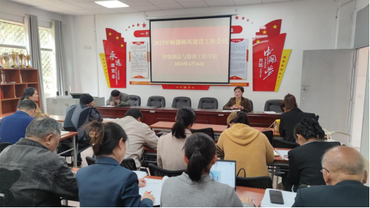 根据校党委工作安排,4月26日下午4:00学校组织召开了2023年师德师风建设工作会议,并在各学院设立分会场。智能制造与能源工程学院组织了全院教师在B104多媒体会议室观看现场直播。