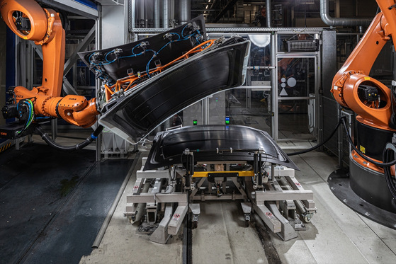 此外,宝马集团还使用了新的、更轻的夹爪,这些仿生的、拓扑优化的机器人部件重量减轻了25%,从而在CFRP车顶生产中只需要一个带双夹爪的机器人,而不是之前的三个。这些双夹爪都是在宝马集团兰茨胡特工厂通过3D打印自行制造的。