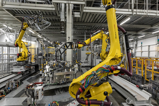 在慕尼黑的车身车间,宝马集团使用了仿生机器人夹持器来夹住和移动BMW i4的整个地板组件。这种新一代夹持器在重量和最大负载方面得到了进一步优化,重量约为100公斤(包括附加装置),比其前身轻30%。这种精巧的结构是由砂型铸造和铝混合而成的,可用于重载机器人,从而节省能源并减少二氧化碳排放。