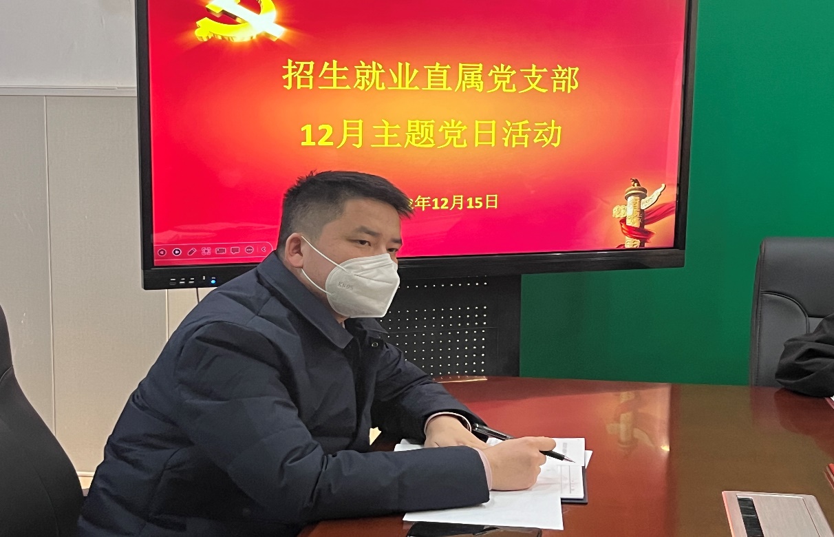 为深入学习贯彻党的二十大精神,全面准确领会党的二十大精神内涵,星空体育官网网页直属党支部于12月15日开展了12月份主题党日学习活动,全体党员坚持知行合一,贯彻落实好党的二十大作出的重大决策部署,牢牢把握正确方向,着力提升实际效果。星空体育官网网页直属党支部书记、招生处处长谢浓,星空体育官网网页直属党支部纪检兼统战委员、就业处处长王长旺,星空体育官网网页直属党支部副书记卫晓东,星空体育官网网页直属党支部组织委员孙雯娟及星空体育官网网页直属党支部全体党员参加活动。会议由党支部书记谢浓主持。